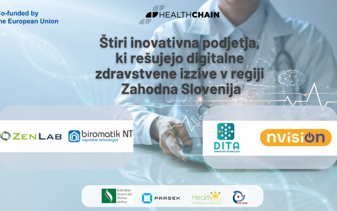 Kirurški sanatorij Rožna Dolina, vodilna zdravstvena ustanova Projekta Health Chain v regiji Zahodna Slovenija, je identificirala dva ključna izziva, s katerima se sooča pri oskrbi pacientov in delovanju bolnišnice. Za reševanje teh izzivov so bila izbrana štiri inovativna mala in srednje velika podjetja (MSP) – vsak izziv bo reševalo podjetje iz Slovenije, ki bo prispevalo lokalno strokovno znanje, skupaj s podjetjem iz druge regije, partnerke konzorcija, sodelovanje pa bo spodbujalo medregionalnost inovacij. Partnerstva so zasnovana na tak način, da bodo zagotavljala oblikovanje vrhunskih rešitev za izboljšanje rezultatov zdravljenj pacientov in optimizirala delovanje bolnišnice. Predstavljamo štiri izbrana podjetja, ki bodo sodelovala pri reševanju zdravstvenih izzivov v regiji Zahodna Slovenija.