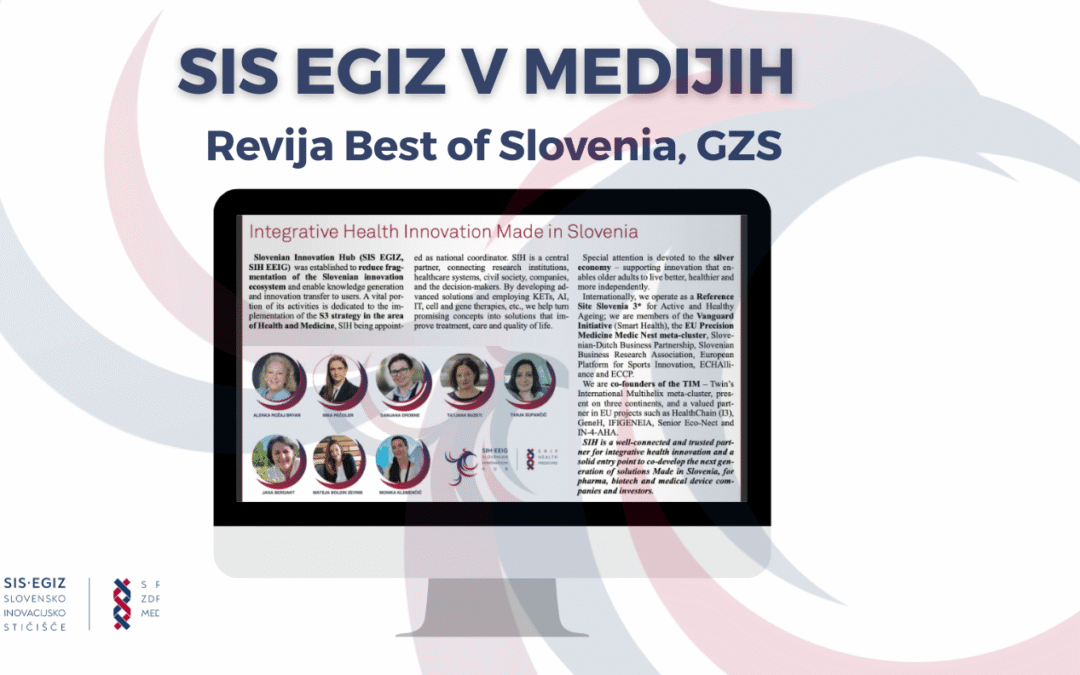 Slovenian Innovation Hub (SIS EGIZ, SIH EEIG) was established to reduce fragmentation of the Slovenian innovation ecosystem and enable knowledge generation and innovation transfer to users. A vital portion of its activities is dedicated to the implementation of the S3 strategy in the area of Health and Medicine, SIH being appointed as national coordinator. SIH is a central partner, connecting research institutions, healthcare systems, civil society, companies, and the decision-makers. By developing advanced solutions and employing KETs, AI, IT, cell and gene therapies, etc., we help turn promising concepts into solutions that improve treatment, care and quality of life.